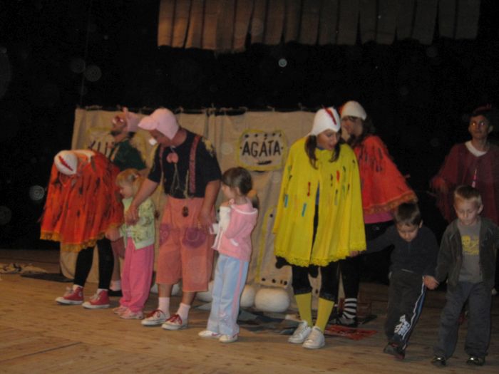 Usporiadatelia / Banskobystrický samosprávny kraj, Stredoslovenské osvetové stredisko Banská Bystrica, Mesto Brezno, Divadelný súbor Jána Chalupku, Mestské kultúrne stredisko Brezno / už po tretí krát pozvali aj súbor dospelých hrajúci pre deti z nášho mesta. Materinky sa opäť predstavili vo svojom štýle, plnom veselých skečov, komických situácií a pekných pesničiek. Tentoraz sa predstavili vynoveným predstavením Aleny Demkovej PRASIATKA.