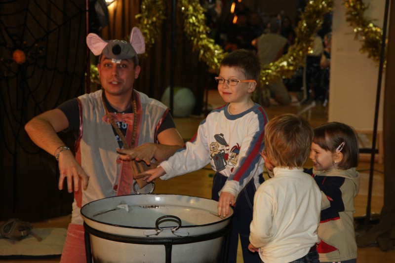 V úlohe myšiaka Ruda sa predstavil Peter Pónya,/ alternuje Vladimír Žák/, Ježibabu Hermínu si zahrala Nóra Radičová / alternuje Petra Súdorová, ktorá je zároveň autorkou hudby k predstaveniu/,úlohu kocúra Alfonza vynikajúco stvárnil Michal Hollý,úloha čerta Tadeáša patrila Adamovi Rafajdusovi,ktorý prevzal "čertovské žezlo " po Radoslavovi Halgašovi, v úlohách myšiek Terezky a Barborky diváci videli Ajču Adriánu Kozárovú a Tinku Bakovú. V sále im držali palce myšky Bianka Bartovicová, Kristínka Baková a Dominika Rudická. Techniku obsluhoval Tomáš Fica.