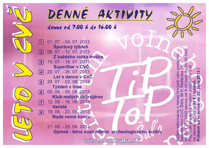 Denné aktivity - LETO 2013