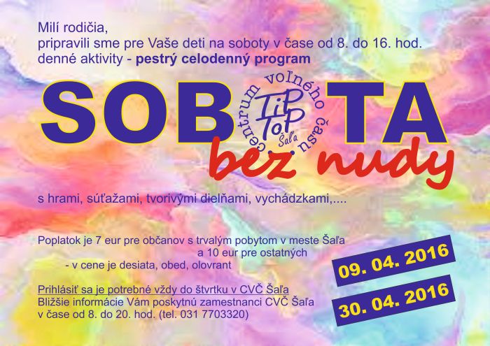 SOBOTA bez nudy 30.4.2016