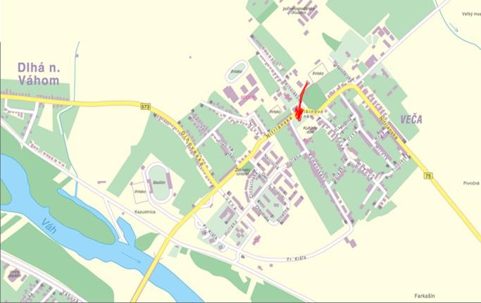 Z centra Šale sa do Veči dostanete cez most. Z centra Šale je most cca 600 m, od mosta je Spoločenský dom cca 1 km.